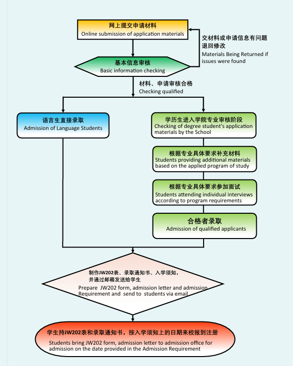 - International students applying for graduate programs are required to provide official bachelor diplomas, transcripts and corresponding Chinese/English translations.